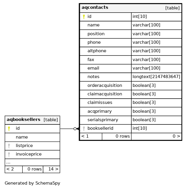 | booksellerid_aqcontacts_fk | Performance | Asc | booksellerid |