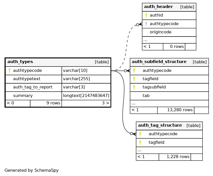 | PRIMARY | Primary key | Asc | authtypecode |