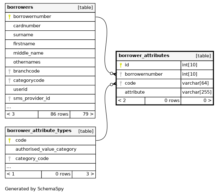 foreign key from the borrowers table, defines which patron/borrower has this attribute |